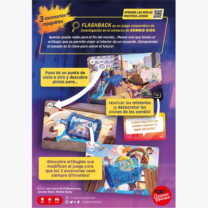 Flashback es un juego cooperativo de investigación basado en imágenes. En esta caja encontrarás una gran aventura que consta de 3 capítulos llamados Recuerdos. Debes resolver los Recuerdos si quieres salvar el planeta.