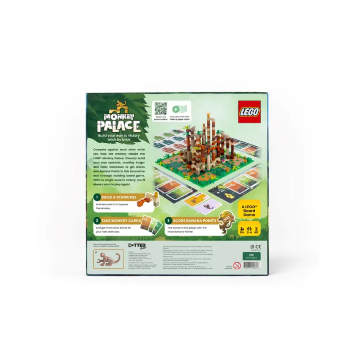 Reconstruye mejor que nadie el Palacio LEGO® del Mono. Crea largas e ingeniosas escaleras que conduzcan a lo más alto del palacio y gana piezas y Bananas en este innovador y estratégico juego de mesa de construcción. Sin un camino único a la victoria, ¡siempre querrás volver a jugar!