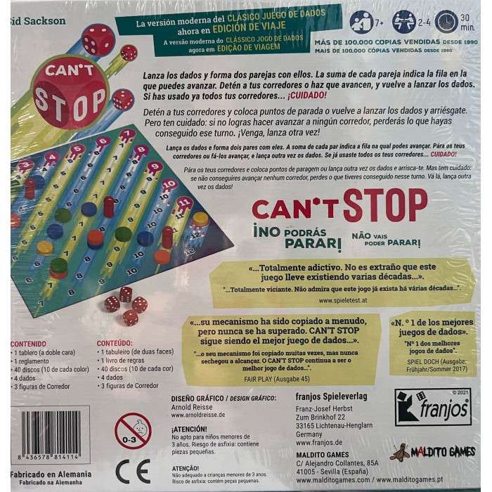 Detén a tus corredores y coloca puntos de parada o vuelve a lanzar los dados y arriésgate. Pero ten cuidado: si no logras hacer avanzar a ningún corredor, perderás lo que hayas conseguido ese turno. ¡Venga, lanza otra vez!