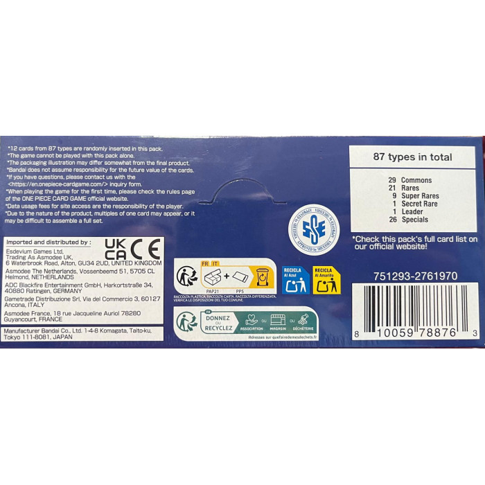Cada Sobre contiene 12 Cartas de Anime 25th Collection OP EB-02.