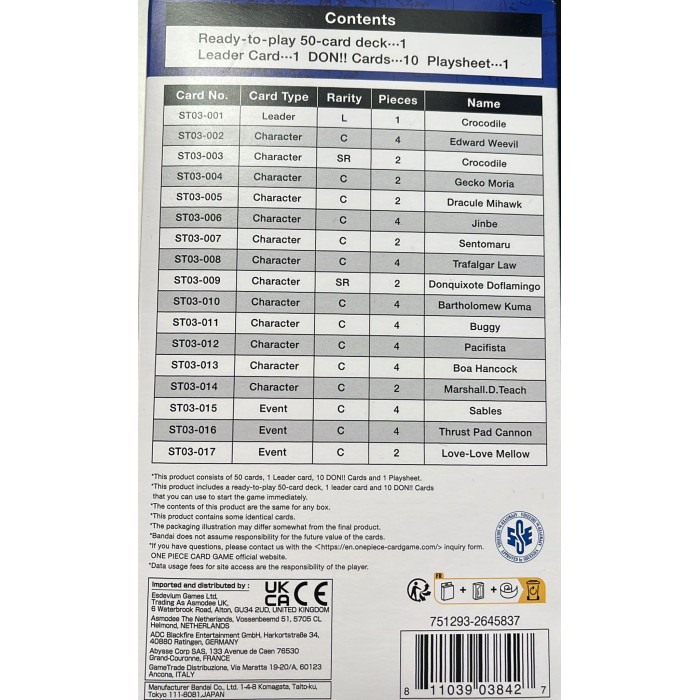 Starter Deck The Seven Warlords of the Sea ST03 One Piece Card Game